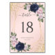 Número de mesa de casamento floral azul marinho e bege elegante geométrico. Itens correspondentes disponíveis.