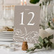 Placas florais elegantes com flores brancas esboçadas e folhas perto do fundo do design com fundo esticado. Personalize os cartões de mesa florais desenhados com o número da tabela em caracteres brancos clássicos. Para solicitar as placas de mesa, edite e adicione cada número ao seu carrinho individualmente e, em seguida, faça o check-out quando terminar. Projetado para coordenar com a nossa coleção de casamento Floral.