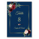Numeração De Mesa Casamento Floral Dourado Azul Marinho Borgonha
