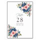 Cartões de número de mesa para casamento floral rosa choque e azul marinho personalizáveis para os detalhes do seu evento.