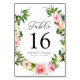 Cartões florais e elegantes para as mesas de casamento, com uma coroa de flores cor-de-água rosa e pinceladas com folhas verdes vívidas. Personalize os cartões florais cor-de-rosa adicionando o número da tabela, seus nomes e a data do casamento. O design repete atrás. Projetado para coordenar com a nossa coleção de casamento Floral Suave Rosa.