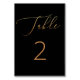Adicione a elegância do eterno à sua recepção de casamento com esta placa de números de tabela em preto e ouro. Com um fundo preto e um script clássico do estilo ouro, este design combina sofisticação e simplicidade. As letras douradas são impressas (e não em folha real), dando-lhe o aspecto luxo da caligrafia metálica sem o custo adicional. Ideal para casamentos formais, negros ou noturnos. Este número da tabela ajuda os convidados a encontrar seus assentos enquanto melhora seu decoro de mesa com estilo refinado. Uma combinação perfeita para temas modernos, clássicos ou de noivado em grande escala.