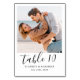 Cartão de Número de Tabela de Casamento de Foto com Script Branco Mínimo Moderno e Preto. As cartas de números da mesa de casamento elegantes, com fotos de casal favoritas, cartas de mão modernas com "Número da mesa" em um roteiro de caligrafia moderno em preto sobre fundo branco. Design repete-se de ambos os lados. O que você muda de um lado muda automaticamente do outro. Para solicitar os cartões de mesa: adicione seu nome, foto, data de casamento e número da tabela.Adicione cada número ao seu carrinho um por um e faça check-out quando terminar.