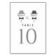 Guie seus convidados com estilo com este simples e elegante cartão de número de mesa de casamento gay, apresentando duas ilustrações de noivos com chapéus clássicos e gravatas borboleta. O design preto e branco é limpo e atemporal — perfeito para casamentos LGBTQ+ com um tema moderno, minimalista ou formal. Personalize com seus nomes e números para cada mesa. Um detalhe encantador que complementa qualquer recepção de casamento entre pessoas do mesmo sexo.