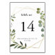 Este número da mesa de casamento da caligrafia verde-tropical de ouro geométrico é perfeito para um casamento moderno. A design apresenta lindas folhas verdes pintadas à mão, enfeitando um quadro geométrico dourado. Este é um número de tabela de dois lados. Adicione cada número de tabela de que você precisa ao seu carrinho individualmente.