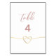 Oriente seus convidados com este cartão de número de mesa de casamento minimalista e elegante. Com uma caligrafia suave em rosa poeirado e um coração de corda dourada romântico, este design combina simplicidade moderna com romance atemporal. O número da mesa grande é fácil de ler à distância, enquanto o fundo branco limpo adiciona um toque refinado à decoração da sua recepção. Perfeito para temas de casamento chic, moderno ou romântico — basta atualizar o número e imprimir para cada mesa.