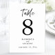 Cartão de Número de Mesa para Convidado de Casamento Moderno Design de Letra em Preto e Branco com Nomes da Noiva e do Noivo