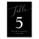 Número mínimo e elegante da mesa de casamento com texto moderno de roteiro que diz "Mesa" no topo de um fundo preto.