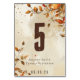 Cores terríveis de um outono em laranja enferrujado. Grande número de mesa neste design rústico. Perfeito para um casamento outono. O mesmo design de ambos os lados.
