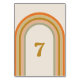 Este design da tabela de casamento retrô foi inspirado pela tendência retrógrada dos anos 70. Apresenta um arco-íris em cores retrógradas. Esta design é perfeita para um casamento retrô, boho, disco ou estilo 70s. Todo o texto é personalizável.