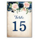 Bonita floral boho rústico madeira de celeiro de campo com cartão de número da mesa de casamento apresenta gráficos florais de cor d'água pintados à mão / rosas em tons ricos de azul marinho e rosa pincel / pêssego e estilo encantador de letra de letra de letra de cor. Entre em contato comigo para obter ajuda sobre a personalização ou se você precisar de outro produto com este design.