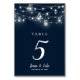 Cartões de números de tabela de casamento impressos com um modelo DIY simples para personalização. Este design de chic rústico apresenta cadeias de luzes brilhantes de cordas e frascos de pedras em um fundo azul marinho escuro. Personalize cada número de tabela de que você precisa e adicione cada um ao seu carrinho individualmente (nota: adicionar um número maior de placas ao carrinho resultará na impressão com o mesmo número). Use as ferramentas de design para escolher as fontes e cores de que você quiser ou carregar suas próprias fotos para fazer um design para seu decoro de mesa de casamento!