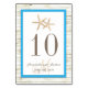 Esta simples e elegante carta de número da mesa de casamento de praia mostra uma madeira branca, parecida com o fundo da tua cor de casamento. O ponto focal da design é um par de estrelas-do-mar elegantes. Cores personalizadas disponíveis mediante pedido.