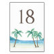 Números de tabelas brancas com ilustrações de aquarela de uma vista frontal com palmeiras. Personalizar por números individuais. Estes números de mesa tropicais são perfeitos para casamentos de praia, chás de panela e muito mais.
