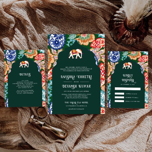 Indian Folk Art Elephant Emerald Green WeddingCriado por Shabbir D