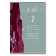 A borda esquerda desta elegante e moderna placa de número da mesa de casamento apresenta uma borda vermelha e borrifada de cor-d-água cortada com falso brilho prateado. A palavra "mesa" aparece em um guião branco de escrita manual em um fundo verde sábio. Adicione os nomes dos seus convidados que estão atribuídos a cada mesa.