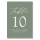 Trendy, cartões minimalistas de números das mesas de casamento com cartas brancas modernas com "Mesa" em um roteiro de caligrafia moderno. O design apresenta um fundo verde sábio ou cor de sua escolha. O design repete atrás. Para solicitar os cartões de mesa: adicione seu nome, data do casamento e número da tabela. Adicione cada número ao carrinho individualmente e faça check-out quando terminar.