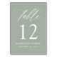 Elevem sua recepção de casamento com nossas elegantes placas de números de tabela, apresentando uma caligrafia branca graciosa em um fundo verde macio. Este design moderno e sofisticado adiciona um toque natural fresco, fazer perfeito para casamentos em qualquer estação, quer estejamos a celebrar um caso de jardim de primavera ou um casamento no inverno aconchegante. Personalize cada cartão com seus nomes e data de casamento para criar um detalhe único e significativo que reflita seu amor. Essas placas de números de tabela combinam estilo e praticidade, oferecendo uma bela maneira de guiar seus hóspedes até seus assentos e, ao mesmo tempo, aprimorar sua decoração geral. Adicione cada número de tabela ao seu carrinho para solicitar e faça check-out quando terminar.