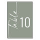 Caligrafia Rotativa Elegante Sage Casamento Verde. A mesa é definida em um script rotacionado à esquerda e o número da tabela à direita. Personalize facilmente o número e adicione cada número ao seu carrinho separadamente à medida que você o altera. O mesmo design está do outro lado e será atualizado simultaneamente à medida que você fizer a alteração no número.
