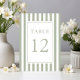 Número da Mesa de Casamento Verde Sálvia Listrado Elegante.