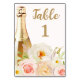 Esta placa de número da mesa de chá de panela embebida apresenta flores elegantes de aquarela e uma garrafa de champanhe com seus detalhes em letra chic. Crie um cartão para cada número de tabela e adicione-o ao carrinho para cada número necessário. CORRESPONDENTE a itens na nossa coleção.