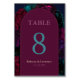 Chic elegante tons de joia burgundy flores da mesa de casamento Número. Adicione um toque de sofisticação às suas mesas de casamento com este chic e elegante sinal de número de mesa floral em tons de joia. Apresentando um arranjo impressionante de flores roxas ricas, fardados, marinhos, fúcsia, magenta, turquesa e roxas, esta design aumenta sem esforço a decoração do casamento. Perfeito para guiar os hóspedes aos seus assentos com estilo, este símbolo de número de mesa combina elegância moderna com uma estética floral vibrante, fazer-o uma bela adição à sua recepção de casamento.