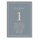 Estas belas cinzas azuis com números de mesa douradas também incluem um gráfico de assentos para facilitar aos seus convidados encontrar a sua mesa facilmente. Nosso design apresenta uma cor de fundo de cinza azul com uma cor de ouro, contorno elegante e fonte para o número da tabela e os nomes de convidados. Bonita, elegante e totalmente personalizável, estas cartas de números de mesas serão a adição perfeita à sua decoração de mesa de casamento. **NOTA: Para fazer o pedido, basta ajustar o número da tabela e adicionar cada número ao carrinho separadamente. Então, dê uma olhada depois que terminar.