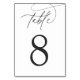 Cartões simples e chic em branco nítido e nítido com letras pretas em cinza suave fazem uma declaração elegante no seu casamento ou evento. Design apresenta a inscrição de script de caligrafia manuscrita com o número da sua tabela em números clássicos.