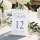 Guide guests to their seats with this classic navy blue calligraphy wedding table number card, featuring a timeless and formal design. “Table” is written in graceful navy calligraphy, paired with a centered table number in serif typography for a structured, easy-to-read layout. Personalize the card with your names and wedding date below the number to create a cohesive reception detail that coordinates with your wedding stationery suite. The design is printed on both sides for a refined, finished look. Perfect for traditional ceremonies, church weddings, and elegant reception venues, this table number card offers a polished way to complete your table décor. This card measures 3.5"x5". Edit each table number individually and add them to your cart to ensure a smooth ordering process.