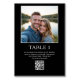 Essas placas de números de tabela de fotos preta com código QR para compartilhamento de fotos são perfeitas para sua recepção de casamento! Basta escolher uma foto sua favorita para usar. Esta é uma forma excelente de pedir aos convidados para enviar suas fotos para o seu site de casamento. Seus convidados adorarão compartilhar suas fotos fabulosas de seu casamento e recepção com você. É tão fácil fazer com que essas cartas sejam suas. Basta selecionar "Personalizar este Modelo", carregar a fotografia, digitar o URL do código qr e digitar o número da tabela e adicionar ao carrinho. Repita para quantas mesas você terá na sua recepção.