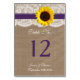A coleção de girassol rústico é uma design impressionante que apresenta um adorável fundo de efeito de burvolta rústico com uma trim romântica de efeito de renda branca vintage acabada com um girassol e fita roxa atordoante. Estes cartões de tabela podem ser personalizados para sua ocasião especial e tornariam a mesa perfeita para seu casamento, chá de panela, festa de noivado, festa de aniversário e muito, muito mais. *Note que o Zazzle só vende produtos impressos para que este item não tenha quaisquer materiais reais de burlap, rendas, girassol ou fita. *** COMO PEDIR *** Personalize e adicione cada placa de número de tabela ao seu carrinho, um a um. No momento, o Zazzle não tem um sistema que permita qualquer personalização dos produtos após um pedido ter sido feito.