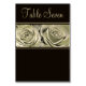 Esta elegante placa de número de tabela apresenta belas rosas de platina contra um fundo castanho de chocolate escuro dramático, e separado por bordas prateadas de platina. Seu texto está em prata de platina. A parte traseira da placa é idêntica. Este cartão de mesa corresponde aos "Convites de Casamento de Monograma de Platinum Rosa Monograma" e outros produtos de casamento em nossa loja. Também pode ser usado para qualquer evento formal ou janto em qualquer estação.