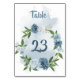 número de tabela personalizável elegante flores azuis e brancas, com algumas folhas verdes, cor azul, coroa, coroa