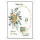 Afternoon High Tea Party Table Card for your Anniversary/Birthday/Any party. The illustration features a Greenery wreath with teapot and cozy teacup. The TEXT can be easily customized with your choice of word & script.