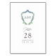 Cartões de número de mesa de casamento com monograma de crista com tipografia de caligrafia elegante personalizável com as iniciais do casal.