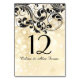Um cartão de mesa elegante e elegante, com um floreio preto de curlicudos glaciais num fundo fino de champanhe metálico colorido de um boque. Clique no botão PERSONALIZAR TI para adicionar o texto e os números de tabela. Vem com 5 cores. Convites correspondentes, RSVPs, guardanapos coquetéis e muito mais disponíveis. Para perguntas ou pedidos relativos a outros itens com este design, contacte: cheryl@cheryldanielsart.com. "Black Glitter Curlicue Swoop" por Cheryl Daniels © 2015.