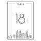 Uma tabela de casamento única para um casamento acontecendo na bela cidade de Dallas. Ele apresenta um número de tabela simplificado descendo sobre uma versão estilizada do horizonte único da famosa cidade. Este item faz parte de uma coleção de várias peças maior com itens adaptados a antes, ao dia e após a sua cerimônia de casamento. Alguns outros itens correspondentes a isso incluem: etiquetas de presentes, gráficos de assentos, cartões de escolta e muito mais. Visite o link da coleção ou o arquivo Colorselle para ver mais.