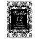 Tradicional chic elegante, moderno e bonito retro casamento vintage preto damask personalizado número de tabela com notas musicais em volta, em fundo preto, personalize com seu texto para os modelos para suas ocasiões ou celebrações especiais. Visite a LOJA PERSONALIZADA _WEDDINGS para produtos correspondentes.