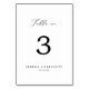 Este delicado número da mesa de caligrafia negra é perfeito para um casamento moderno. A design romântica minimalista apresenta uma magnífica e elegante tipografia negra num fundo branco com um aspecto simples e limpo. A placa impressão na frente e atrás (lado duplo). Os itens são impressos exatamente como aparecem na tela quando você adiciona ao carrinho, por isso personalize e adicione cada número de tabela que você precisa ao carrinho individualmente.