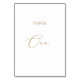 Esta delicada mesa de caligrafia em ouro é perfeita para um casamento moderno. A design romântica minimalista apresenta uma magnífica e elegante tipografia amarela ouro champanhe num fundo branco com um aspecto simples e limpo. A placa impressão na frente e atrás (lado duplo). Os outros números de tabela na coleção são vendidos separadamente.