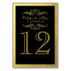 Um cartão elegante e clássico de mesa com folha de ouro falsa floresce sobre um fundo preto, esboçado com uma fronteira clássica do ouro. Clique no botão PERSONALIZAR TI para adicionar o texto e os números de tabela. Vem com 5 cores. Convites correspondentes, RSVPs, guardanapos coquetéis e muito mais disponíveis. Para perguntas ou pedidos relativos a outros itens com este design, contacte: cheryl@cheryldanielsart.com. "Swirly Flourish with Frame", por Cheryl Daniels © 2015.
