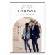 Adicione um toque especial de acabamento às mesas da recepção de casamento com esses cartões personalizados de número de mesa. Nomeie cada mesa após um destino de viagem memorável e adicione uma foto e o nome do destino a esses porta-cartões exclusivos. Sua foto é alinhada na parte inferior em um layout arqueado, com o nome do local e suas iniciais e data de casamento centralizados no topo.