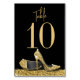Placa de Número da Tabela do Calçado Elegante Glam Black e Dourada High Heel Stiletto com tendências e design e fontes modernas, perfeita para sua festa de aniversário, chá de panela, evento comercial de moda, doce 16, quinceanera, bat mitzvah ou qualquer festa celebrando luxo e diversão com um tema de calçado com bomba de calcanhar alto.