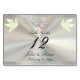 Esta design romântica apresenta um elegante fundo de pérolas brancas com bordas de fita, corações e pombos vinculados a um lugar para o número da tabela, nomes de casais e data do evento. Disponível em várias cores para seu tema de casamento. (A fita é simulada na trabalho de arte). Concebido para coordenar com a Coleção Caseira "Dois Tornar-se-ão Um - Prateado e Dourado". Para alterar os detalhes, clique em "Personalizar". Para mover o texto ou alterar o tamanho, a fonte ou a cor do texto, clique em "Clique para personalizar mais".