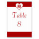 Numeração De Mesa Dupla Felicidade - Coração Vermelho Negrito