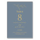 Add a touch of timeless grace to your reception with this personalized, minimalist Christian wedding table number card. This elegant design features a delicate line drawing of a botanical olive branch with olives and leaves — a symbol of peace and enduring love. Set against a stylish dusty blue background, the design blends simplicity with sophistication through refined calligraphy script and clean typography fonts. A treasured Bible verse is thoughtfully included to reflect your faith and create a meaningful ambiance for your special day. Perfect for couples seeking a serene, Christ-centered celebration, this table number card pairs beautifully with a minimalist and botanical wedding theme.
