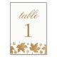 Celebre a beleza do outono com esses belos números de mesa para casamento formal de outono com sotaques em dourado. Personalize com suas próprias informações.