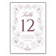 Numeração De Mesa Elegant Burgundy Ornate Floral Frame Wedding