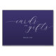 This elegant wedding tabletop sign features a deep purple background with white cursive and sans-serif typography. The design includes the phrases "cards and gifts" in flowing script, accompanied by a simple "thank you" below, creating a sophisticated and appreciative mood. Its minimalistic layout emphasizes clarity and style, making it perfect for expressing gratitude at your special event. The monochromatic color palette enhances its modern aesthetic, ideal for adding a touch of refinement to any celebration.
