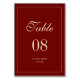 Elegant Script Wine Red Wedding Custom Names Table Number. Customize with your table numbers, bride and groom names, and your wedding date.